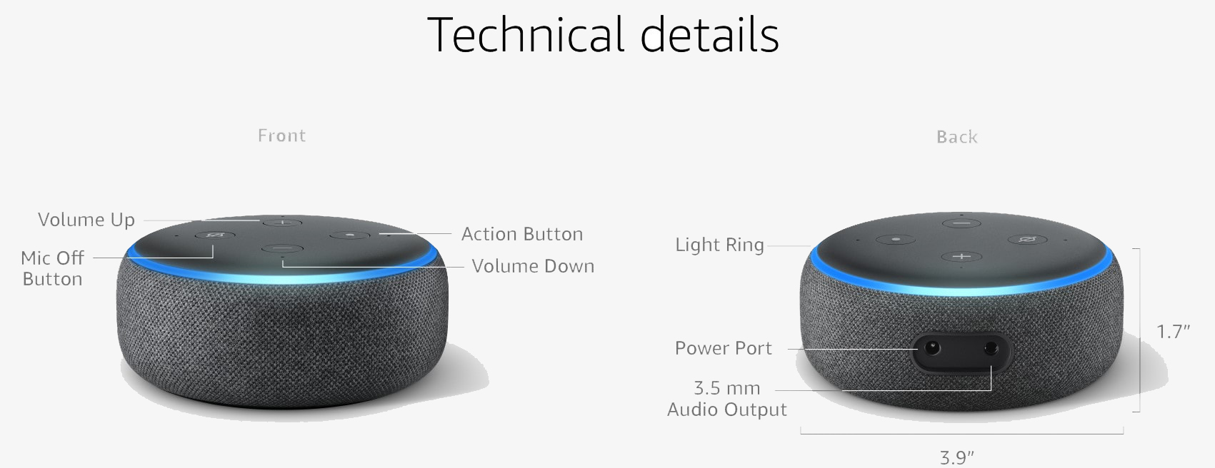 Audio:Built-in speaker for voice feedback when not connected to external speakers. 3.5 mm stereo audio output for use with external speakers (audio cable not included).