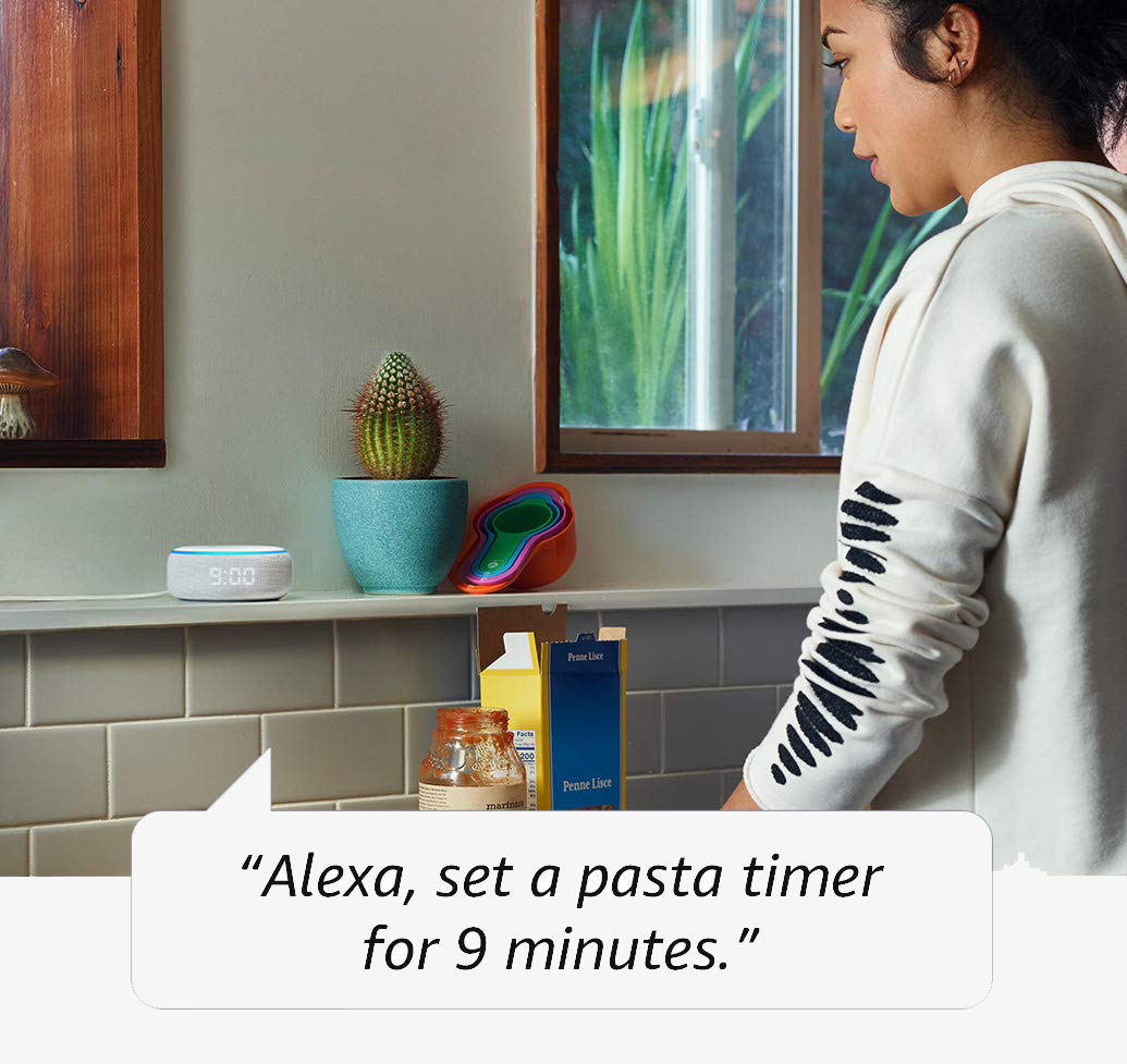 Make your life easier at home. Set timers, ask questions, add items to lists, and create calendar events and reminders. Check the traffic and weather, or play the news. Access thousands of Alexa skills, like Headspace or Sleep Sounds. And do it all with just your voice.